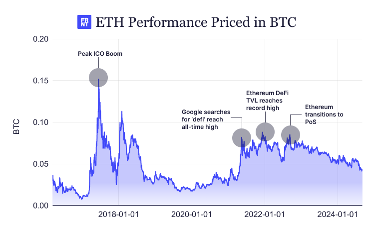 ETH’s Underperformance Has Emerged As A Defining Feature Of The Crypto Market In 2024, Although The Trend Has Been Persisting For Years - Priced In BTC, ETH Is Now Down ~71% Since A June 2017 All-Time High
