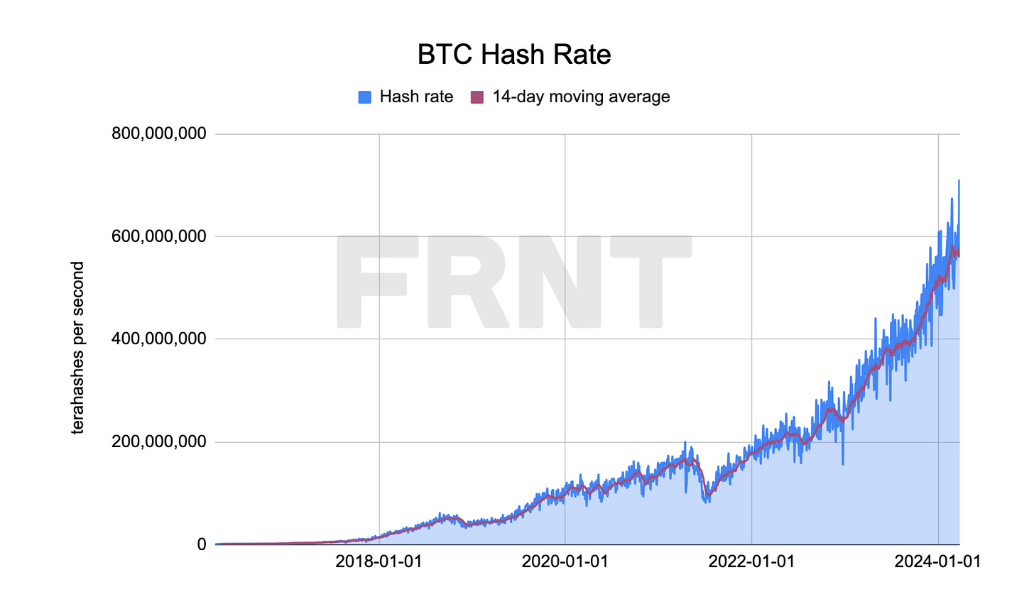 The BTC hash rate, i.e. the computing power devoted to the network, continues to rise with the halving 23 days away, and estimated to take place on April 23...